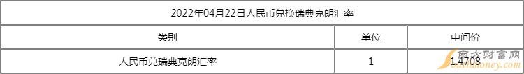 祝永 人民币对瑞典克朗汇率多少?4月22日瑞典克朗汇率查询。下面同小笔来看看。