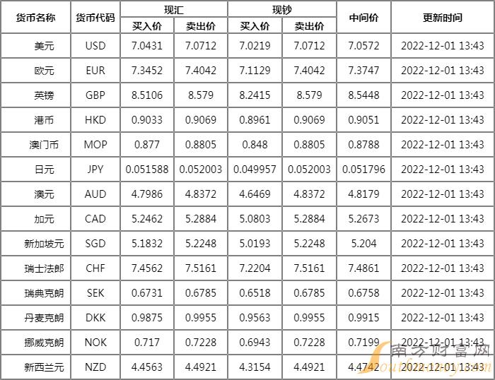 盖黛 12月1日广发银行外汇牌价表 广发银行人民币对美元汇率是多少?下面同侃财君来看看。
