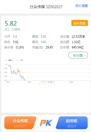 盖黛 2022年8月17日,分众传媒(002027)新增4家机构对其2022年度业绩做出预估。6个月内累计共25家机构,预估2022年净利润均值为43.64亿元,较去年同比下降28.03%。其中,14家机构“买入”,5家机构“增持”,1家机构“审慎增持”。目标价格最高预估9.08元,最低预估6.65元,平均为7.77元。