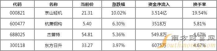 市场表现方面,所属的机械板块收盘报涨,大连重工(10.046)领涨,天奇股份、冀东装备、赛腾股份等跟涨。