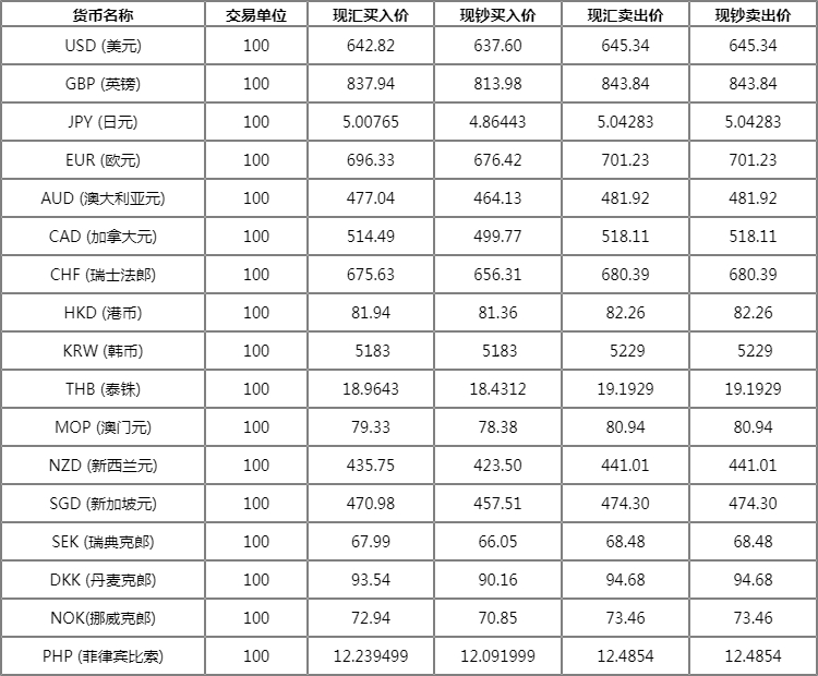注:市场行情变化较快,以上汇率行情数据仅供参考,请以当时最新行情为