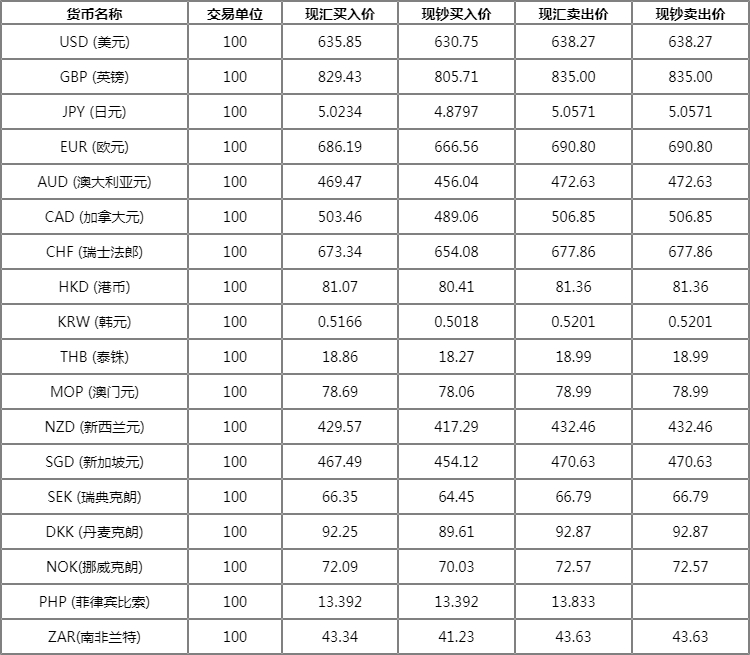 注:市场行情变化较快,以上汇率行情数据仅供参考,请以当时最新行情为准。