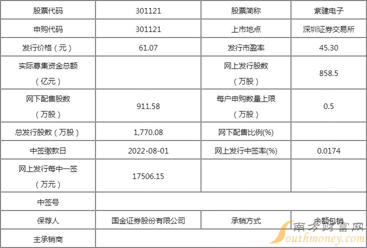 毕恭毕敬从容不迫的煎饼 紫建电子中签号几号公布?301121紫建电子中签号码查询方法 紫建电子(301121)上市时间表 中签号查询 接下来跟吾悟君一起来看看相关资讯。