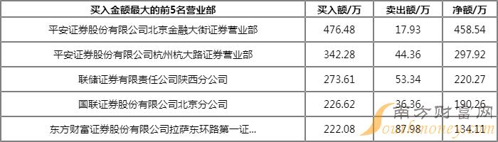 今日上榜营业部中,第一大买入营业部为平安证券股份有限公司北京金融大街证券营业部,买入金额为476.48万元,第一大卖出营业部为国金证券股份有限公司成都东城根街证券营业部,卖出金额为278.84万元。