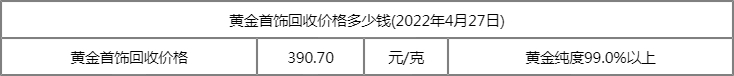 喻慧 回收黄金首饰今天多少钱一克2022年4月27日 来看看今日回收黄金首饰价格,小笔为您提供最新回收黄金首饰价格参考(以下内容仅供参考)