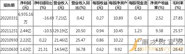 2022年第一季度季报显示,公司实现营业总收入6.41亿,同比增长2.77%;净利润2.34亿,同比增长-8.4%;每股收益为0.13元。