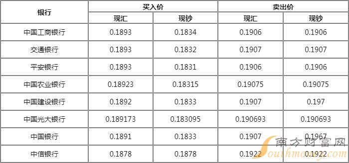 | 货币名称 | 现汇买入价 | 现钞买入价 | 现汇卖出价 | 现钞卖出价 |