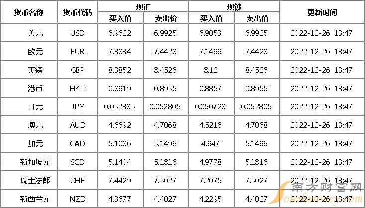 樱桃小口的琳 招商银行外汇牌价查询 12月26日招商银行人民币汇率多少?下面同富贵君来看看。
