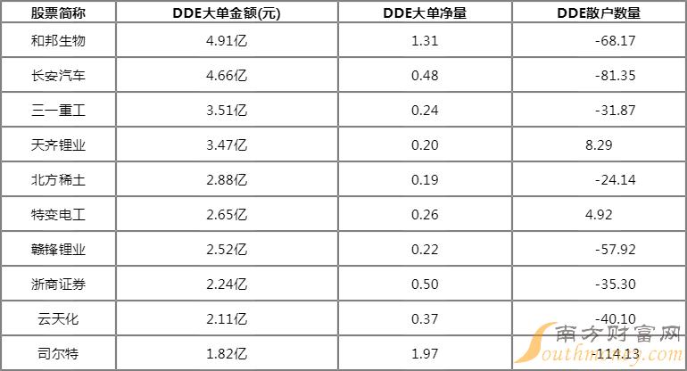 大单金额流出前十名个股如下: