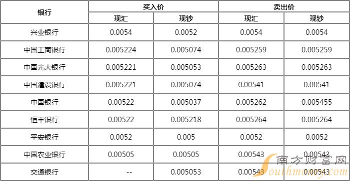 今日银行韩元汇率牌价一览