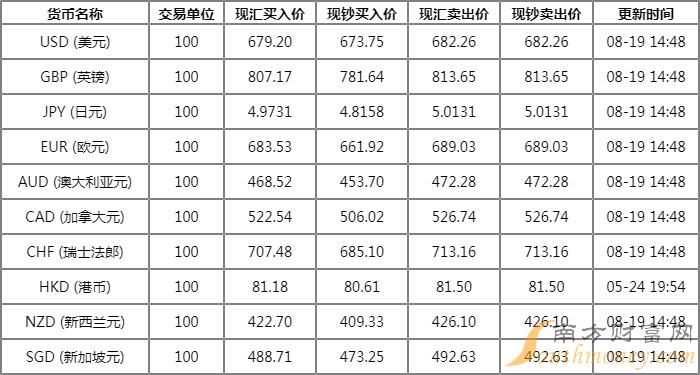 嘴是兔唇的黄豆 中国招商银行外汇牌价8月19日 招行外币汇率多少?下面同猫宁君来看看。