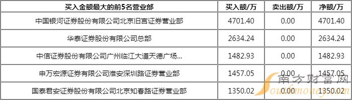 上榜的前五大买卖营业部合计成交1.72亿元, 其中,买入成交额为1.16亿元,卖出成交额为5593.17万元,合计净买入6032.47万元。具体来看,今日上榜营业部中,第一大买入营业部为中国银河证券股份有限公司北京旧宫证券营业部,买入金额为4701.40万元,其次是华泰证券股份有限公司总部,买入金额2634.24万元。卖出营业部中,卖出金额居首的是东莞证券股份有限公司湖北分公司,卖出金额为1426.40万元。
