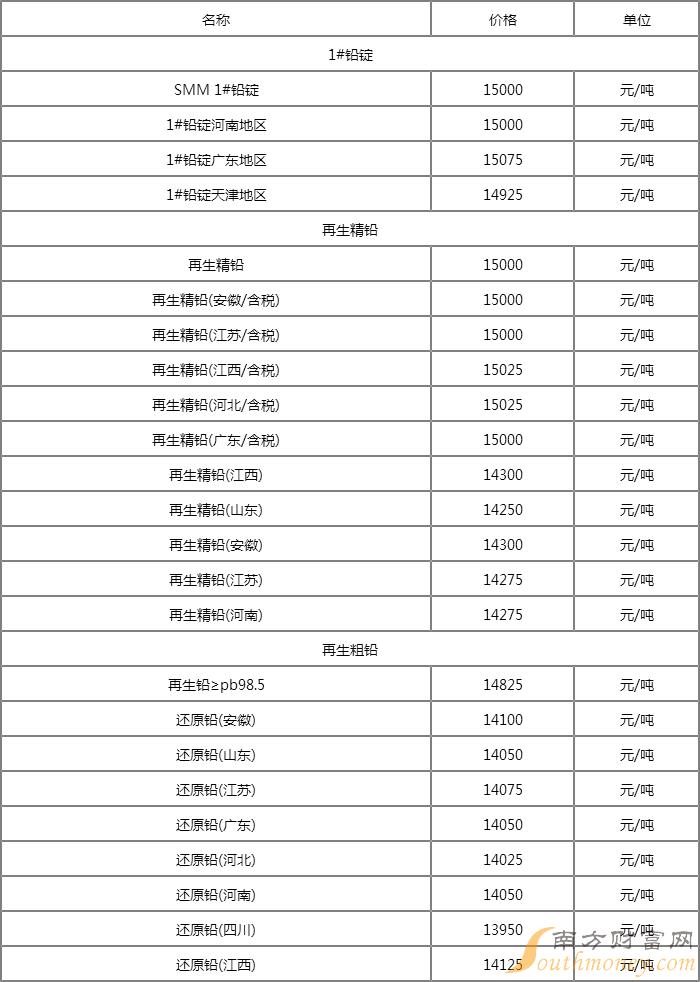(2023年2月20日)铅价格多少钱一吨,如下: