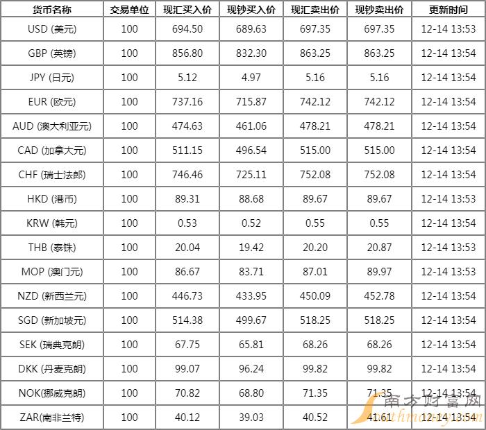 人民币对美元上一交易日收6.9757,12月13日开盘价为6.9856。香港人民币对美元汇率围绕6.98波动。截至12月13日上午10时,人民币对美元汇率报6.9804,日内下贬幅度为0.07%;香港人民币对美元汇率报6.9829,日内升值幅度为0.09%。