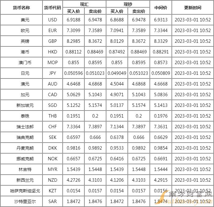 心不在焉怅然若失的领带 中信银行外汇牌价一览(2023年3月1日),人民币汇率中间价多少?小希提供兑换汇率,仅供参考。