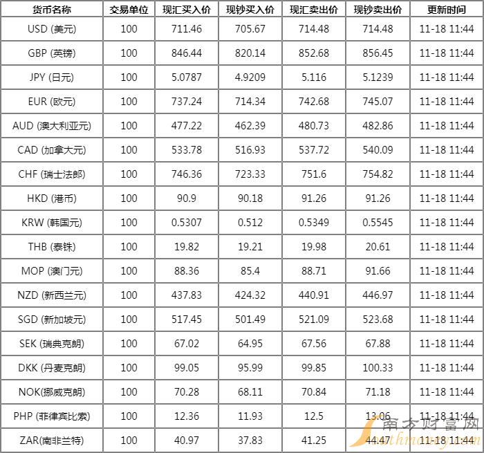 心不在焉怅然若失的领带 中国银行 外汇牌价表一览 11月18日中行汇率是多少?下面同道财君来看看。