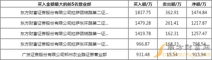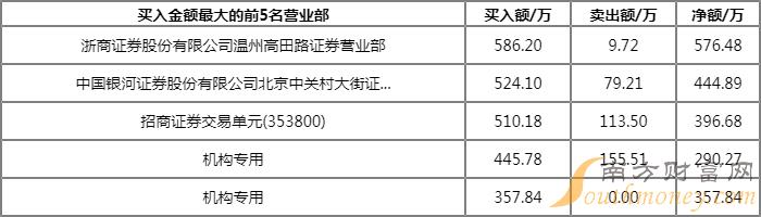 上榜的前五大买卖营业部合计成交1.11亿元,其中,买入成交额为6646.72万元,卖出成交额为4417.74万元,合计净买入2228.98万元。