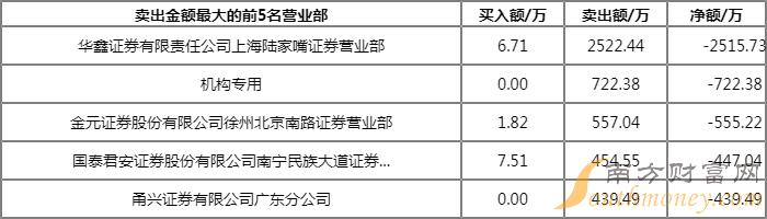 上榜的前五大买卖营业部合计成交7494.02万元,其中,买入成交额为2440.15万元,卖出成交额为5053.86万元,合计净卖出2613.71万元。