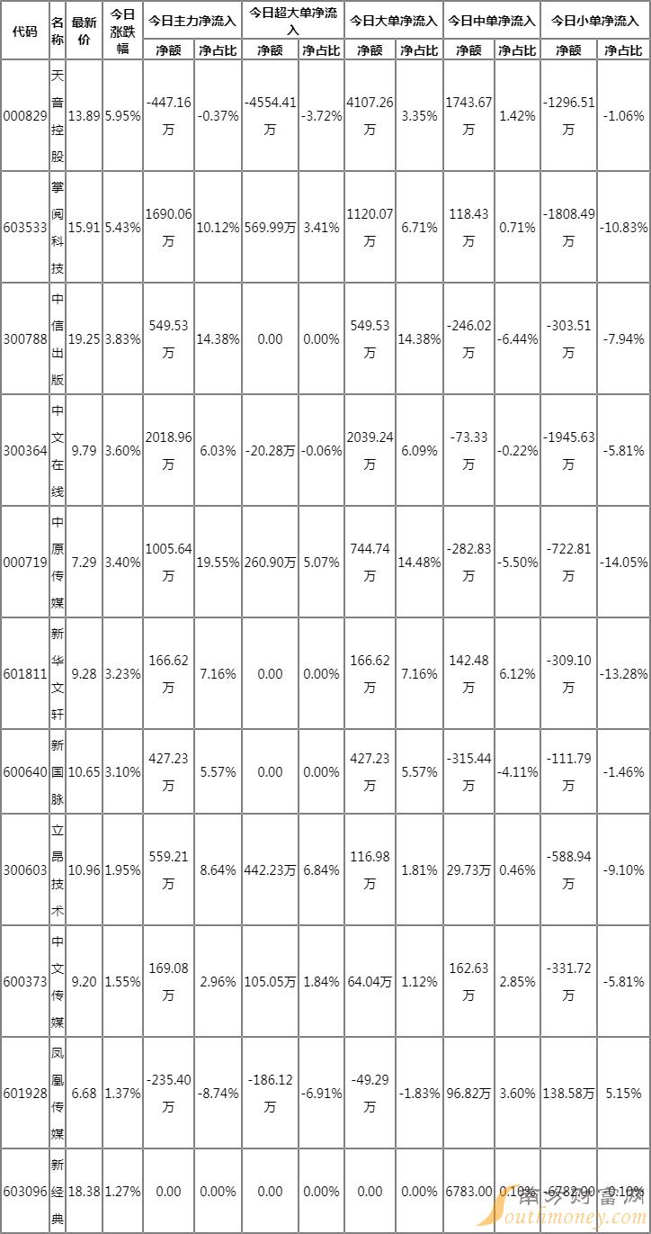 数字阅读主力净流入0.0899亿元,涨幅1.75%,天音控股领涨6.03%,13家上市公司上涨。