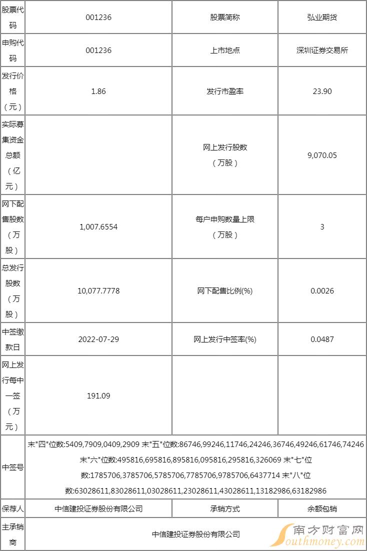 心不在焉怅然若失的领带 001236弘业期货中签号公布了吗?弘业期货(001236)上市时间表 弘业期货中签号查询方法 接下来跟火柴一起来看看相关资讯。