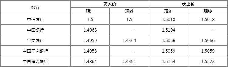 结钞最优:中信 汇率: 1.51000马来西亚元现钞可结钞为1500.00人民币