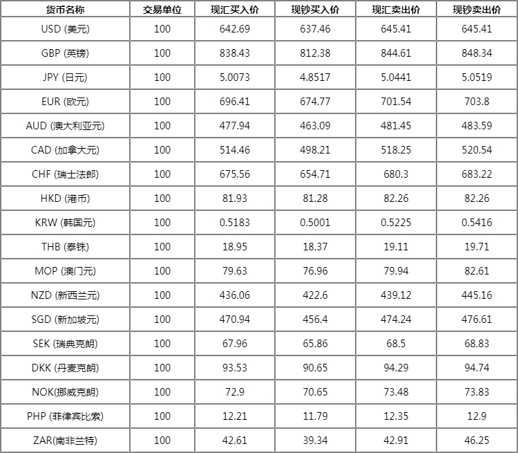 孙浩 中国银行外汇牌价表 4月21日中国银行人民币汇率多少?下面同小V来看看。
