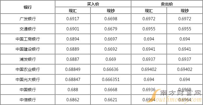 孙浩 浦发银行外汇牌价表 6月12日浦发银行人民币汇率多少?下面同富贵君来看看。
