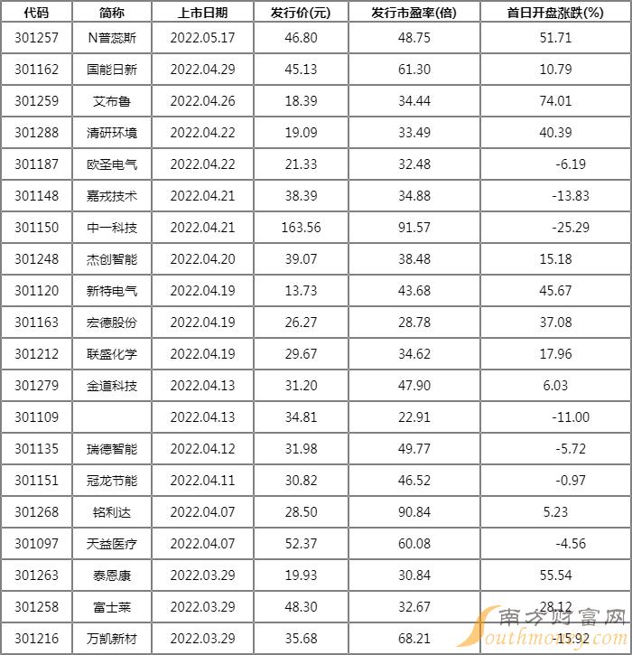 苍绍 2022创业板上市个股有哪些?首一日表现涨幅一览表,下面同看点君来看看。