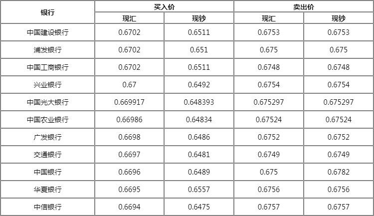 注:市场行情变化较快,以上汇率行情数据仅供参考,请以当时最新行情为准。
