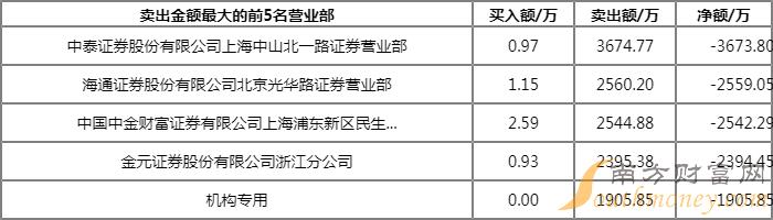 招商积余(001914)龙虎榜明细:日跌幅偏离值达7%的证券
