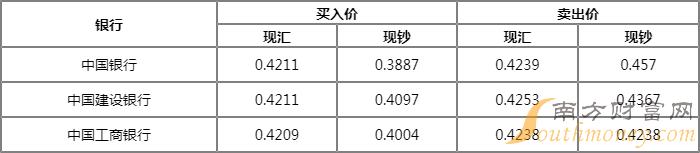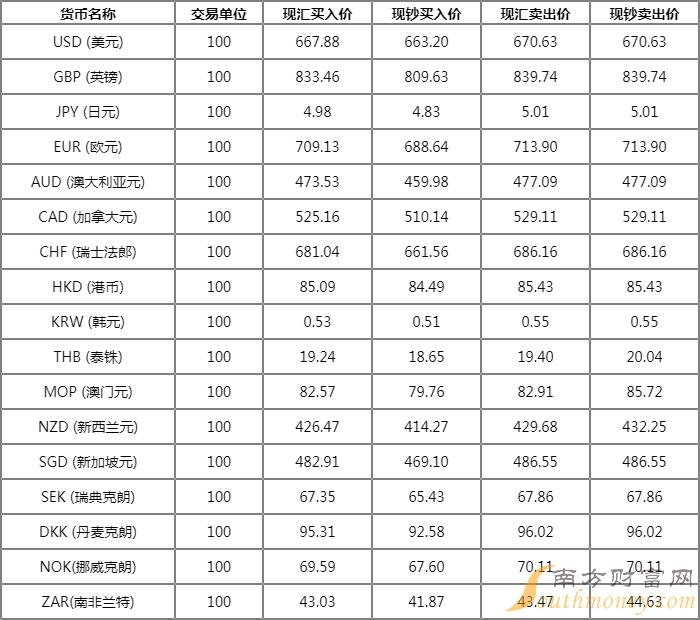 今日银行南非兰特汇率牌价