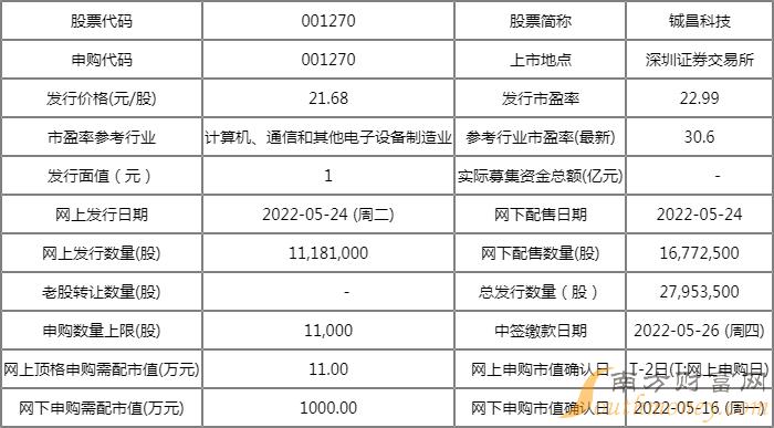 郁郁寡欢的胜 铖昌科技上市日期查询 股票代码为001270,下文就随老李来简单的了解一下吧。