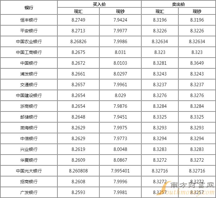 结汇最优:恒丰 汇率: 8.27491000英镑现汇可结汇为8274.90人民币