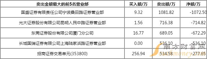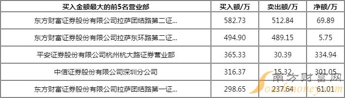 今日上榜营业部中,第一大买入营业部为东方财富证券股份有限公司拉萨团结路第二证券营业部,买入金额为582.73万元,第一大卖出营业部为国盛证券有限责任公司宁波桑田路证券营业部,卖出金额为1081.82万元。