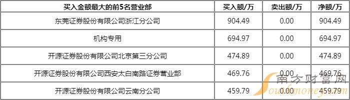 上榜的前五大买卖营业部合计成交5057.75万元,其中,买入成交额为3035.18万元,卖出成交额为2022.57万元,合计净买入1012.61万元。