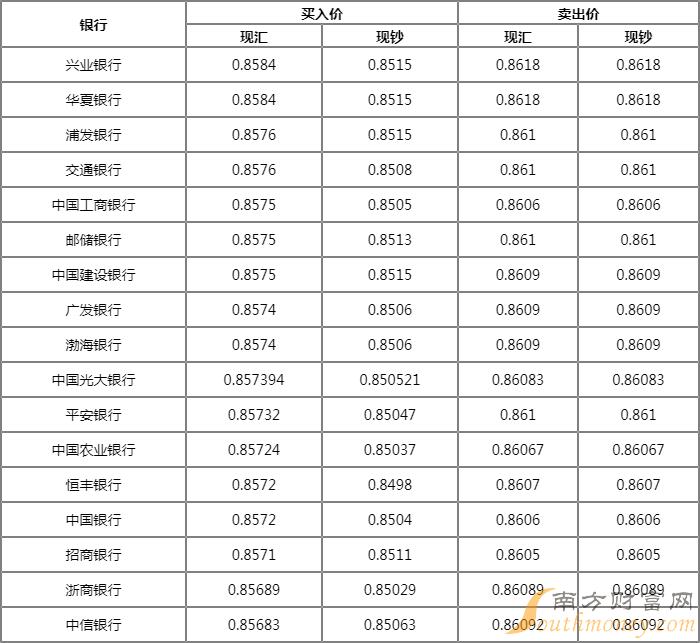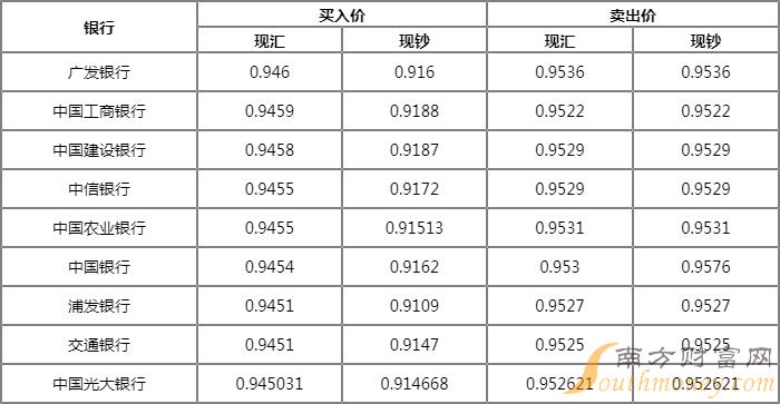 今日银行港元汇率牌价一览