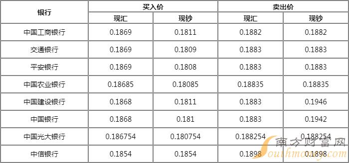今日银行泰铢汇率查询