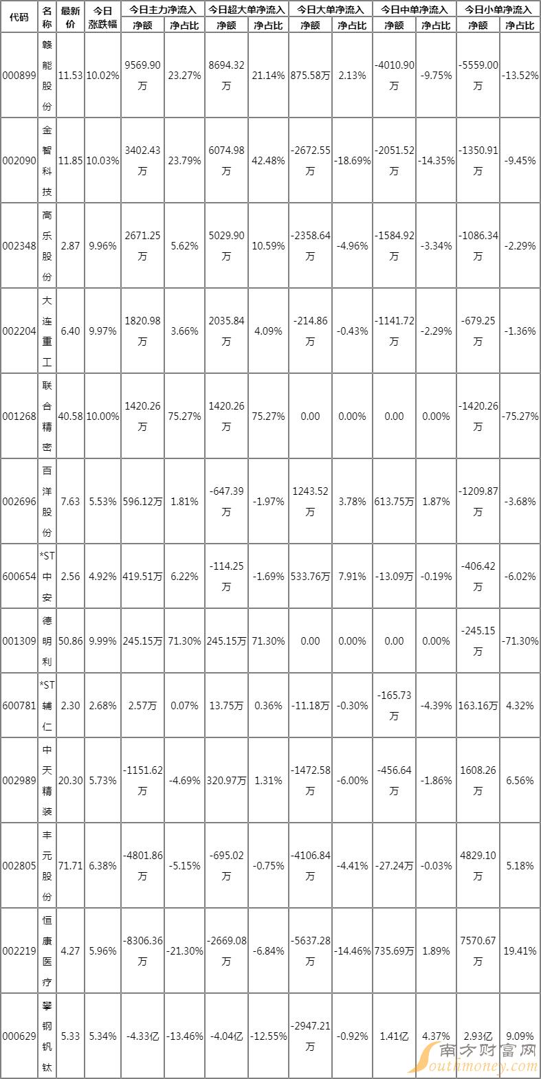 昨日连板_含一字资金流向明细如下