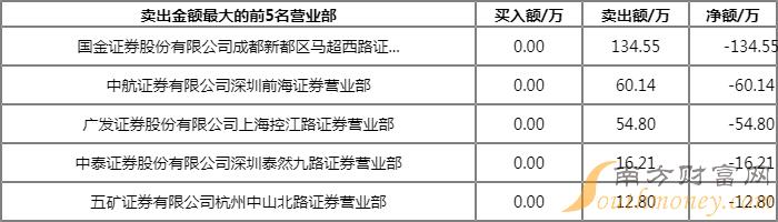 上榜的前五大买卖营业部合计成交525.78万元,其中,买入成交额为235.06万元,卖出成交额为290.72万元,合计净卖出55.66万元。