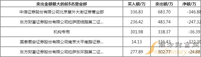 卖三为东方财富证券拉萨团结路第一证券营业部,该席位买入1032.47万元,卖出1525.06万元,净买额为-492.59万元。近三个月内该席位共上榜1151次,实力排名第6。