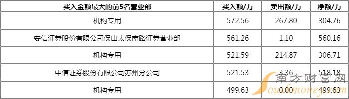 具体来看,今日上榜的营业部中,共有4家机构专用席位现身,即买一、买三、买五、卖三,合计净买入1074.73万元。