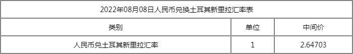 咸双杠 人民币对土耳其里拉的汇率 8月8日土耳其里拉汇率走势?下面同小语来看看。