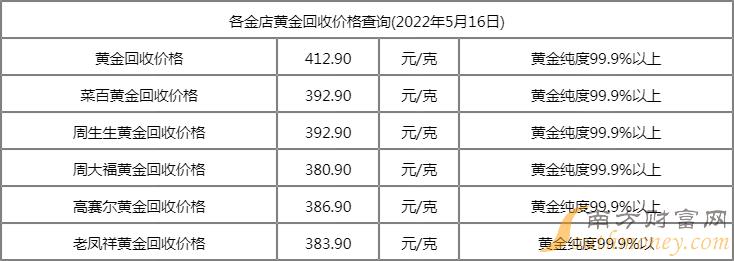 咸双杠 今日黄金回收多少钱一克 2022年5月16日黄金回收价格今天多少一克?附各品牌黄金回收表以下黄金回收价格仅供参考,一般回收是按当日基础金价减去一定的工费(10-50元/克)、损耗等,每个回收商的标准也不一样,黄金回收价格也会相差较大。另外金店有黄金回收业务的不多。可以选择典当行、专业回收公司或者个人回收者、金银加工行、专业回收公司或者个人回收者、金银加工点(以下内容仅供参考)
