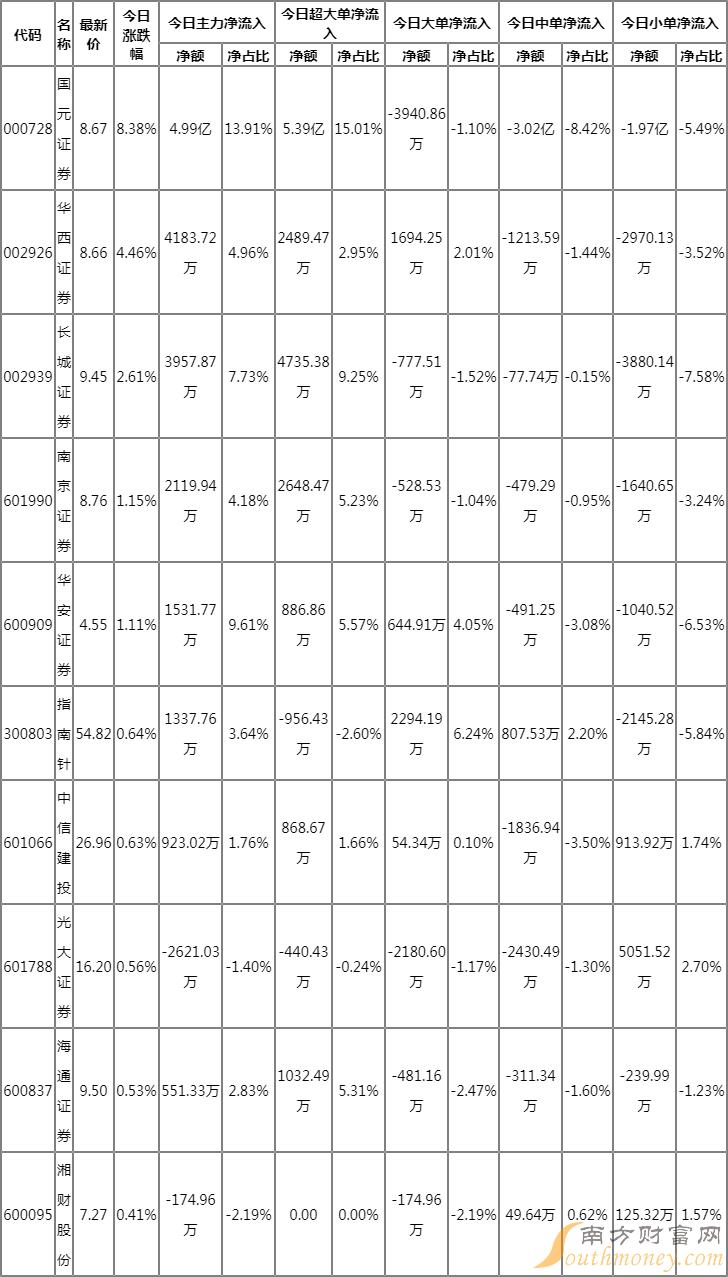 券商概念资金流向明细