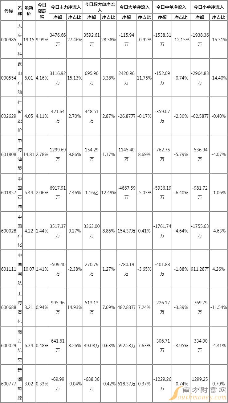 油价相关资金流向明细