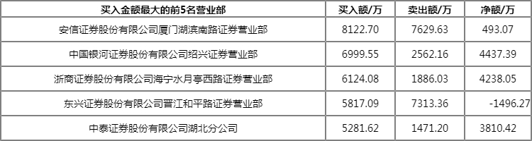 成交额:7.58亿元 合计买入:3.74亿元 合计卖出:3.84亿元 净额:-1046.36万元