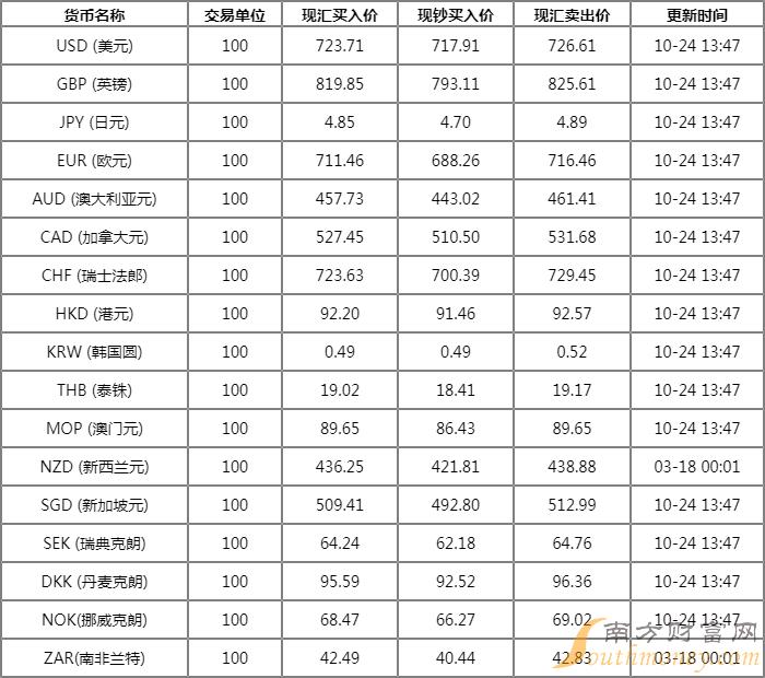 满头飞絮的宁 中国农业银行外汇牌价(2022.10.24) 农行人民币汇率是多少?下面同萧哥来了解一下。