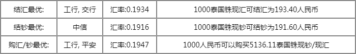 1泰铢 ≈ 0.1942人民币
