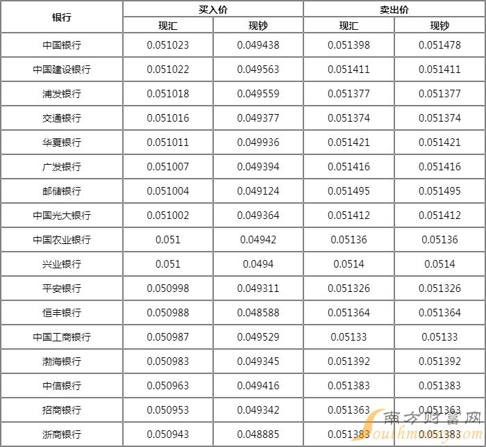1日元=0.05100人民币