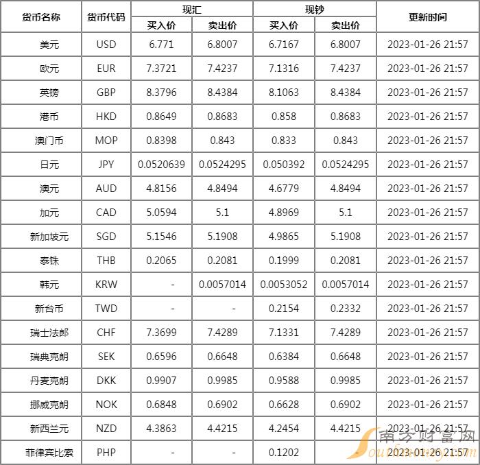 2023年1月29日,货币兑换: